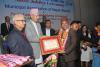 प्रमुख शिवराज सुवेदी द्वारा नेपाल नगरपालिका संघबाट प्रदेश स्तरीय उत्कृष्ट नगरपालिकाको प्रमाणपत्र ग्रहण गर्दै ।