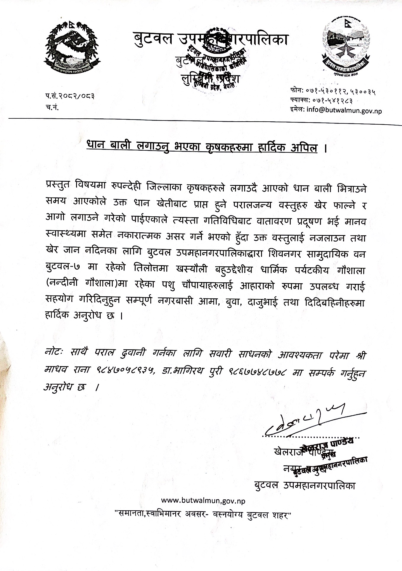 » थान बाली लगाउनु भएका कृषकहरुमा हार्दिक अपिल