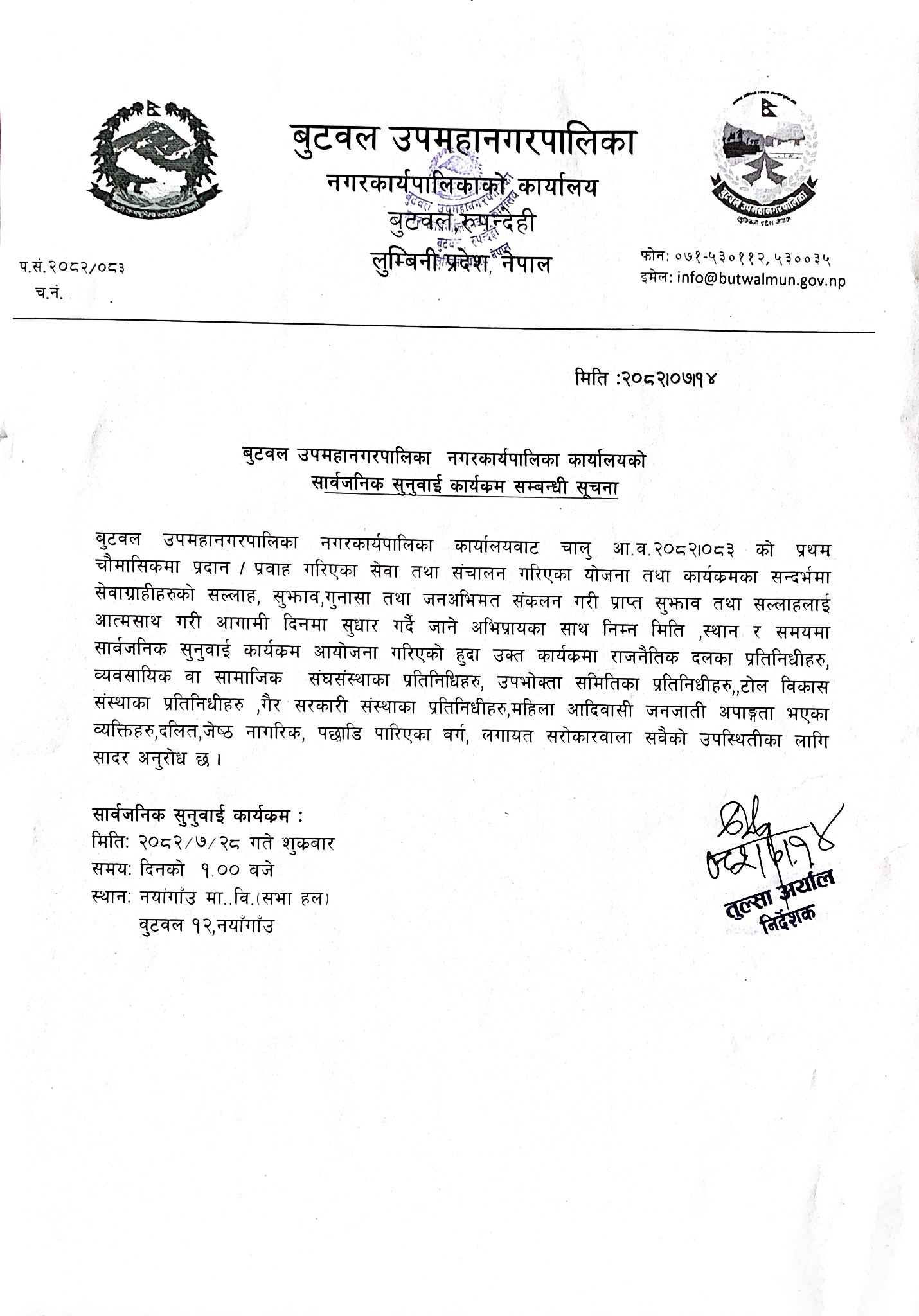 सार्वचनिक सुनुवाई कार्यक्रम सम्बन्धी सूचना