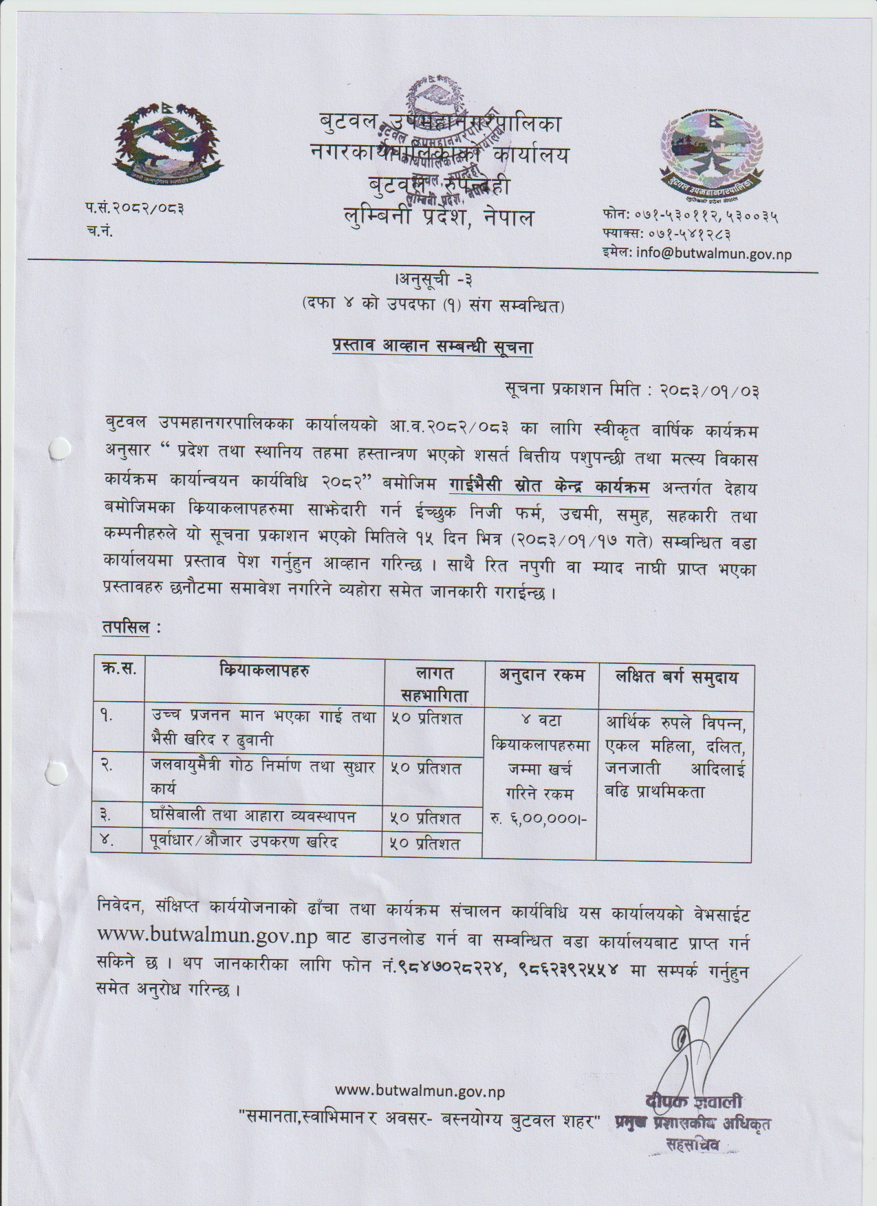 गाईभैसी स्रोत केन्द्र कार्यक्रम प्रस्ताव आव्हान सम्बन्धी सूचना ।
