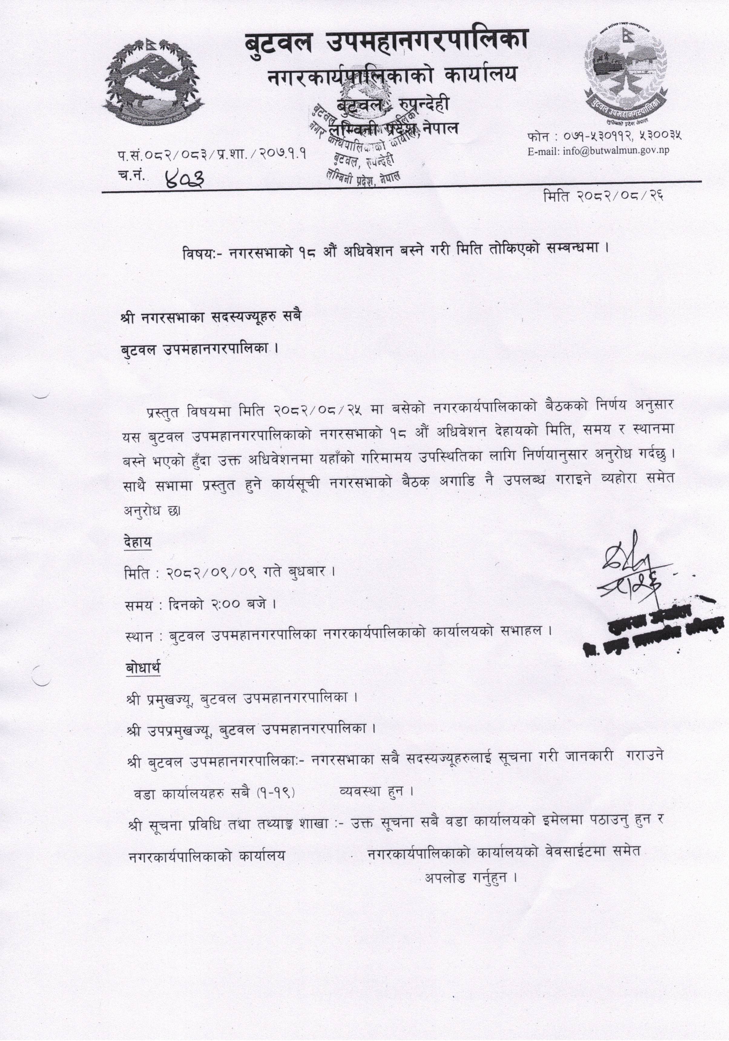 » नगरसभाको १८ औँ अधिवेशन बस्ने गरी मिति तोकिएको सम्बन्धमा ।