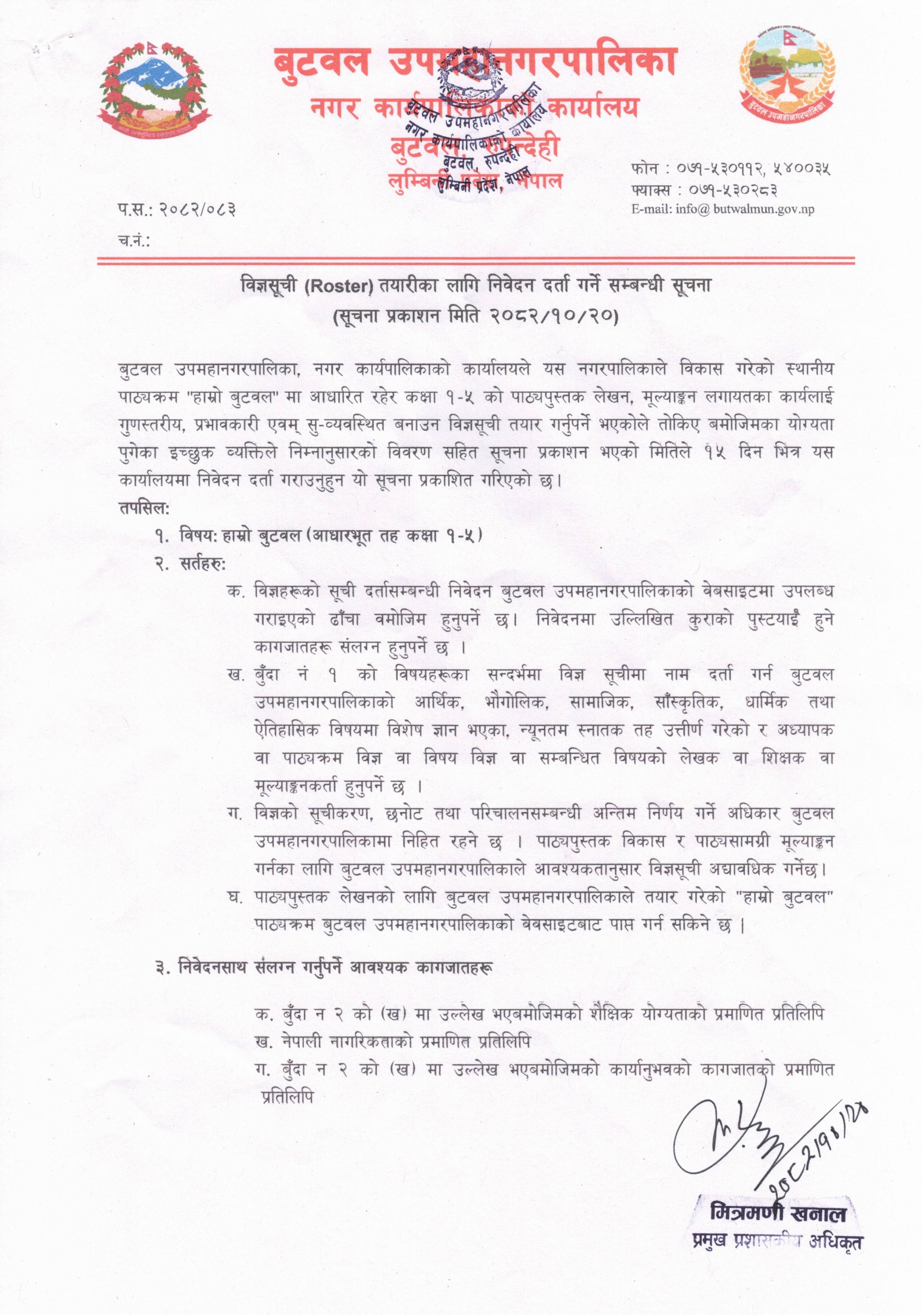 विज्ञसूची (Roster) तयारीका लागि निवेदन दर्ता गर्ने सम्बन्धी सूचना